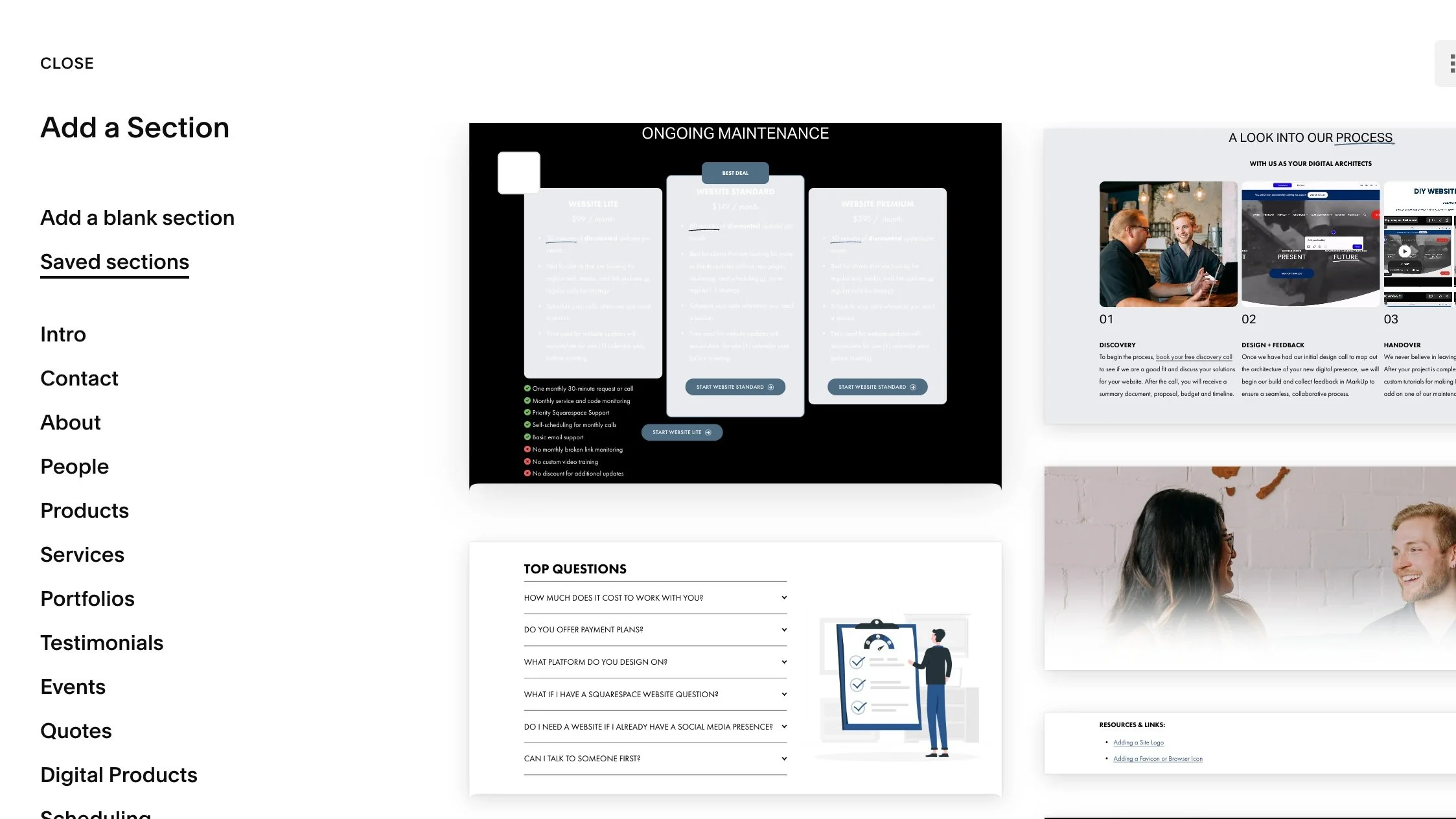 With Squarespace 7.1, you have more flexibility with design choices and don’t have to worry about rebuilding a section that you love. Saved sections allow you to favorite any section and add it to your saved sections to use anywhere else on your site. This is incredibly helpful for individuals who might have similar content across multiple offerings in their business. It’s also helpful to use for regular product launches and to maintain brand consistency.